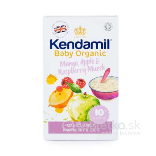 Na sklade už iba 1 KENDAMIL Organic, BIO Ovsená kaša s ovocím (mango, jablko, malina) obilná (od ukonč. 10.mediaca) 150 g